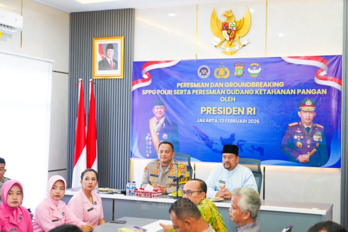 Batu Bara — Bupati Batu Bara H. Baharuddin Siagian, S.H., M.Si., mengikuti peresmian Satuan Pelayanan Pemenuhan Gizi (SPPG) secara serentak di seluruh Indonesia yang dipimpin langsung oleh Presiden Republik Indonesia Prabowo Subianto melalui Zoom Meeting di Aula Tantya Sudhirajati, Polres Batu Bara, Kecamatan Lima Puluh, Jumat (13/2/2026).